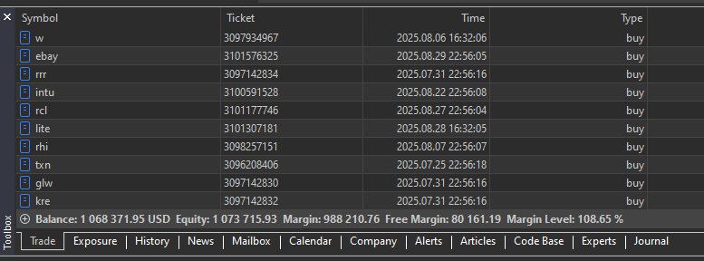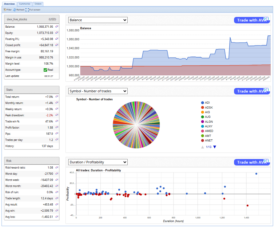 So I created an account DarwinexZero focused on trading stocks and ETFs.